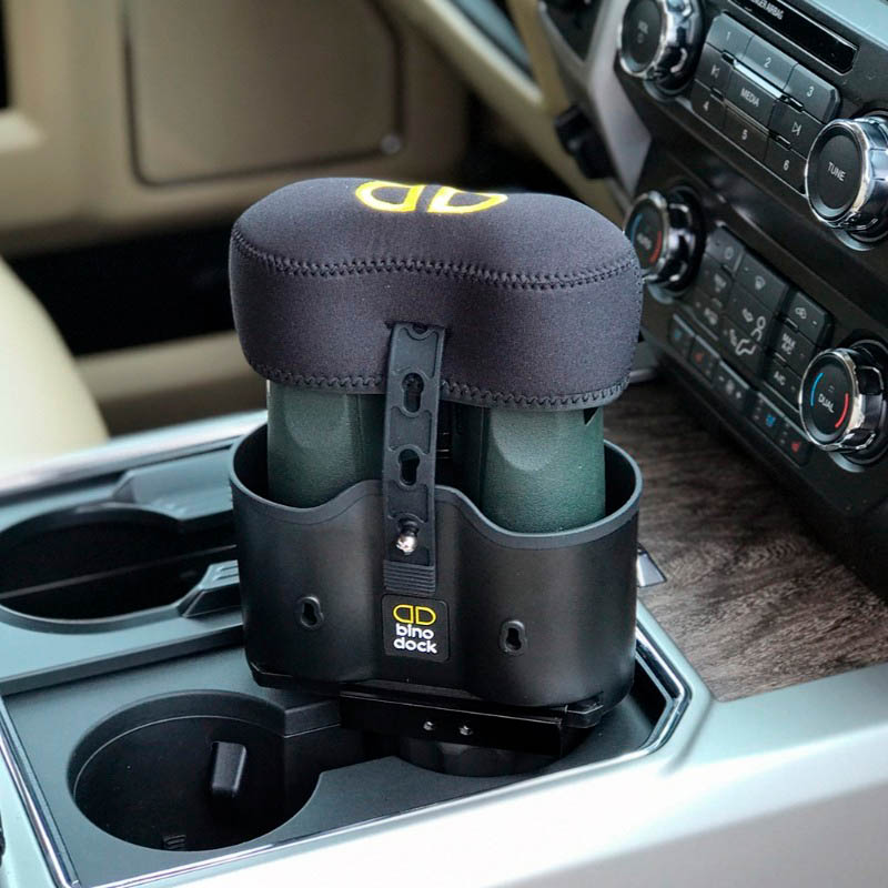 The BINO CAP covers and protects your binocular’s eyepieces from water and dirt when your binoculars are in the BINO DOCK®. Great for using in ATVs and boats. It just slides onto the strap of the BINO DOCK® so it’s always there when you need it and you never have to look for it when not in use