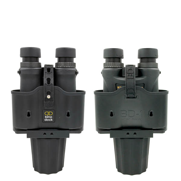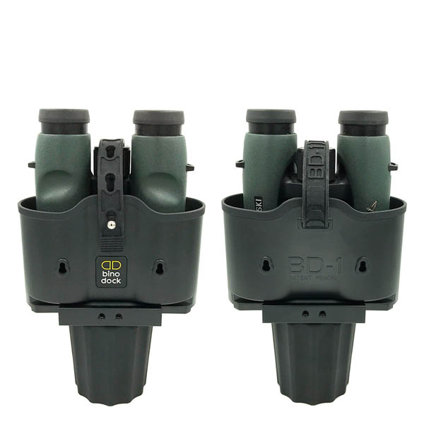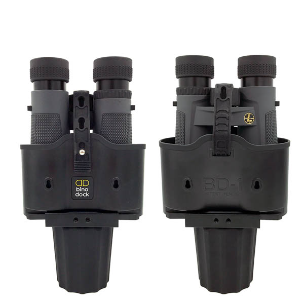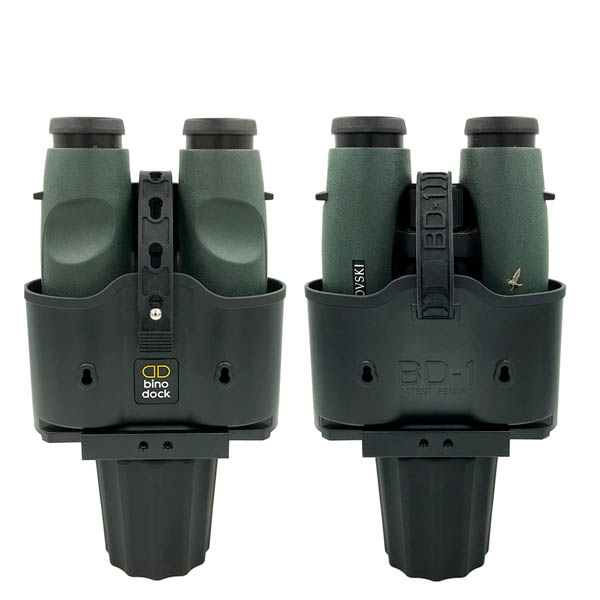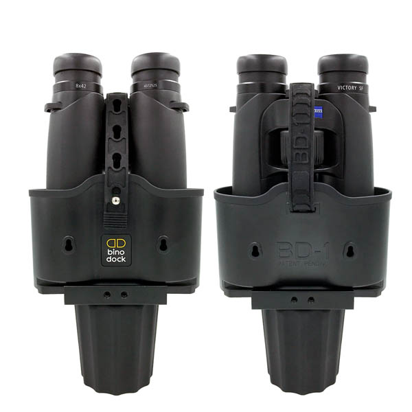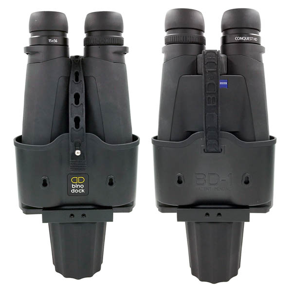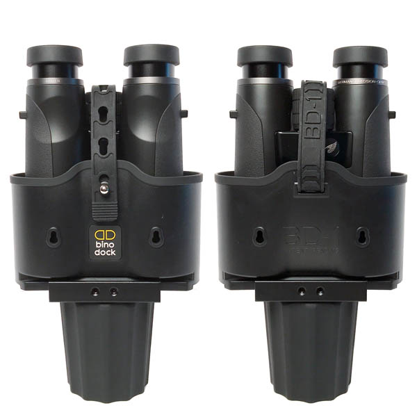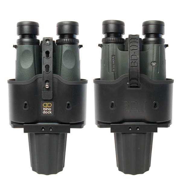 The BINO DOCK binocular holder will hold roof-prism binoculars with up to 56mm objective lens. It will also hold most binoculars with rangefinders. It will NOT hold porro-prism binoculars.